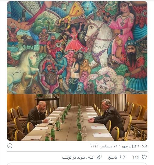 یکی از تصاویر منتشرشده از مذاکرات احیای برجام در وین میخائیل اولیانوف و راب مالی، نمایندگان روسیه و ایالات متحده، را نشان می‌دهد که در این‌باره به رایزنی مشغولند در حالی که جای نماینده ایران خالی است.