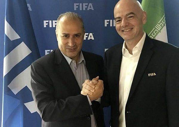 مهدی تاج در کنار اینفانتینو رئیس فدراسیون جهانی فوتبالایران وایر : «علی کریمی» ستاره سابق فوتبال ایران، در برنامه ۱۱ که از شبکه خانگی به نمایش درمیآید، گفته است «مهدی تاج» رئیس پیشین فدراسیون فوتبال، نام خود را به جای «مهدی مهدویکیا» برای حضور در کمیته مسابقات فدراسیون جهانی فوتبال داده بود.نخستین بار «ایران وایر» پانزدهم شهریور سال ۱۳۹۹ در گزارشی اختصاصی، خبر داده بود که سال ۱۳۹۵ «مهدی تاج» نامهای که از سوی فدراسیون جهانی فوتبال برای «مهدی مهدویکیا» ارسال شده بود را پنهان کرد تا خودش به جای او وارد ساختمان فیفا شود.