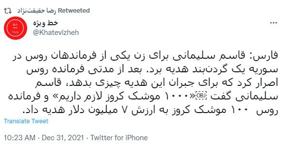 ماجرای گردن بندی که قاسم سلیمانی به همسر یکی از فرماندهان روسیه هدیه داد