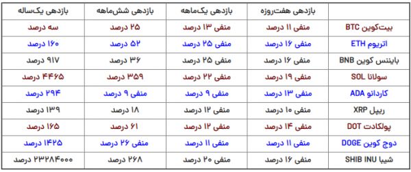 مقایسه بازدهی معروفترین ارزهای دیجیتال
