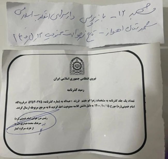 رسید ضبط پاسپورت زهرا مغینمی در فرودگاه امام خمینی تهرانبریهی گفت که ادعای وجود شاکی خصوصی ترفند نیروهای امنیتی برای ارجاع همسرش به اهواز و بازداشت او در آنجا بوده است.این سنگاندازیهای فراقانونی از سوی مسئولان جمهوری اسلامی در حالی است که دولت جدید ایران بارها از زبان مقاماتی چون ابراهیم رئیسی، رئیس جمهوری، حسین امیرعبداللهیان، وزیر خارجه و ذبیح الله خداییان، سخنگوی قوه قضائیه از تسهیل شرایط رفت و آمد ایرانیان ساکن خارج و شهروندان دوتابعیتی سخن گفته بودند. وزارت خارجه دولت رئیسی نیز از راهاندازی یک سامانه برای حل مشکل خارجنشینها و دادن ضمانت مبنی بر نبود مشکل در صورت تردد آنها به کشور خبر داده بود.