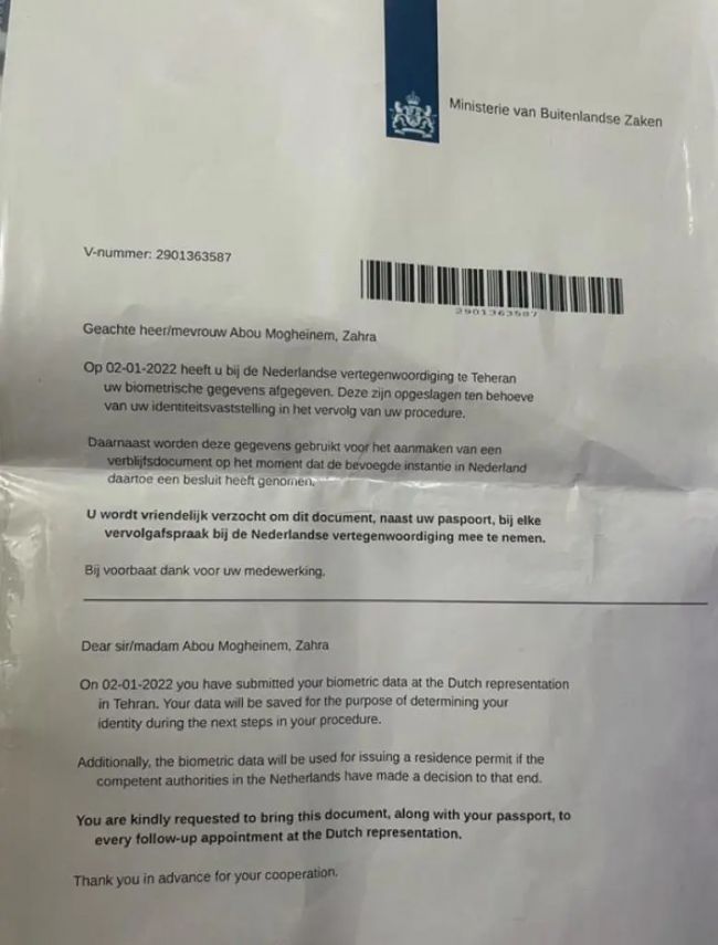نادر بریهی، برادر همسر زهرا مغینمیزهرا پس از بازگشت به اهواز طبق گفته ماموران به شعبه 12 دادگاه انقلاب مراجعه میکند اما قاضی شعبه به او میگوید که هیچ شاکی خصوصی ندارد و باید برای حل مشکل خود به ستاد خبری وزارت اطلاعات در منطقه امانیه اهواز مراجعه کند.همزمان جادر شوهر زهرا مشکل پیش آمده را با مقامات وزارت خارجه هلند در میان میگذارد و در نهایت تصمیم گرفته میشود که ویزای دومی برای او صادر و از طریق سفارت هلند در ترکیه به او ابلاغ شود.