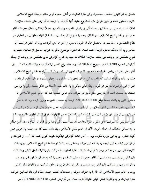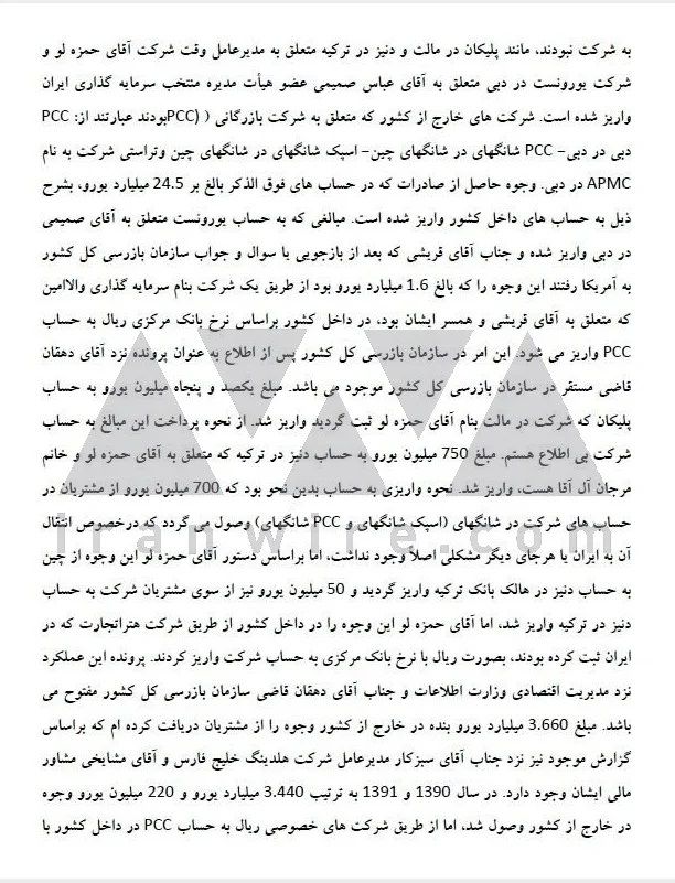 - پرداختهای صورت گرفته به شرکت آرمن گوشت متعلق به برادر رضا حمزهلو به مبلغ سی میلیارد ریال