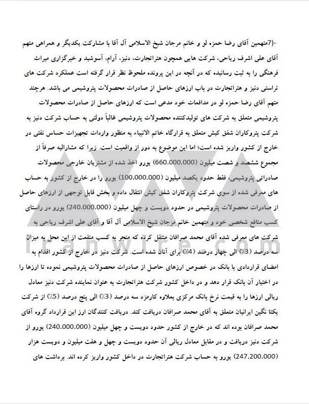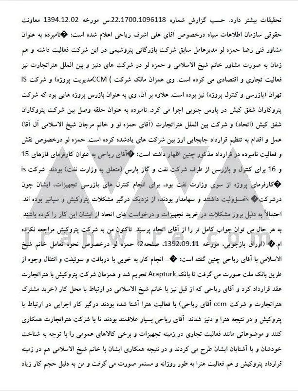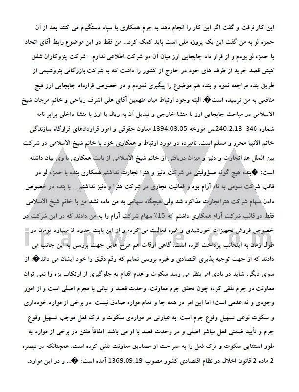 «مبالغی که آقای ریاحی از خانم شیخالاسلامی دریافت کرده، بخشی از پورسانت نامبرده بابت کارچاقکنی قرارداد پتروشیمی است.»