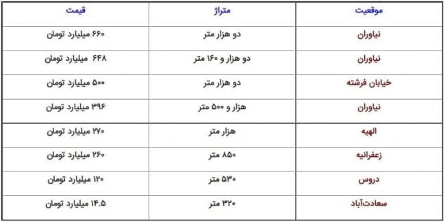 برای مثال پنت‌هاوس دو هزار متری در نیاوران با رقم خیره‌کننده ۶۶۰ میلیارد تومان آگهی شده است.