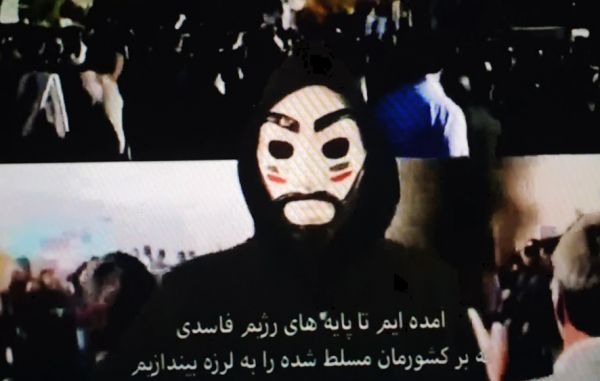 روز سهشنبه در حالی که برنامههای عادی شبکههای رادیو و تلویزیون دولتی ایران در حال پخش بود این برنامهها قطع شد و سپس صحنههایی از تظاهرات ضد جمهوری اسلامی با شعار «مرگ بر دیکتاتور» پخش شد.پس از آن، فردی با نقاب پیامی را خطاب به «ملت ایران» با این مضمون قرائت کرد که «ما آمادهایم تا پایههای رژیم فاسدی که بر کشورمان مسلط شده را به لرزه بیندازیم. دیگر ما را ساکت نخواهند کرد. ما دهه زجر [فجر] را به عزایشان تبدیل میکنیم. حجاب بیحجاب. حجاب را میسوزانیم. بتهایشان را میشکنیم. قصرهای زورگویان را افشا میکنیم تا ملت حسابشان را برسند. رژیم ضرب شست ما را دیده و باز هم خواهد دید».