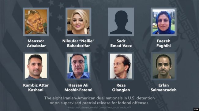 صدای آمریکا :هشت شهروند دوتابعیتی ایرانی-آمریکایی که به دلیل ارتکاب جرایم فدرال در بازداشت یا آزادی پیش از محاکمه به سر میبرندمنابع آگاه میگویند که جمهوری اسلامی ایران درباره مبادله زندانیان با ایالات متحده جدی نیست و میخواهد در ازای آزادی چهار آمریکایی زندانی در ایران پول دریافت کند.