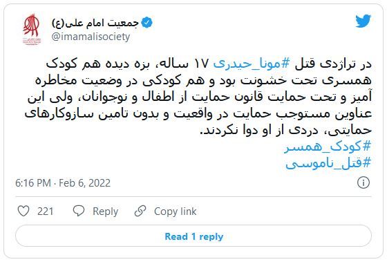 قتل فجیع مونا حیدری بازتاب زیادی در شبکههای اجتماعی داشت؛ از درخواست برای تصویب لایحه حمایت از زنان در برابر خشونت تا محکوم کردن قوانین ضد زن و تبعیضآمیز.