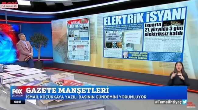 فاکس تیوی در برنامههای محلی خود به واکنش مردم به گرانی برق پرداختگروهی از ساکنان آنکارا، پایتخت ترکیه، روز چهارشنبه با برگزاری تجمعی در اعتراض به گرانی، قبضهای برق خود را آتش زدند.نرخ رسمی تورم در ترکیه طی ژانویه گذشته به ۴۸.۷ درصد رسیده که بالاترین سطح در ۲۰ سال گذشته به شمار میرود. با وجود افزایش قابل توجه قیمت انواع کالاها و خدمات، آن چه که این روزها بیش از همه برای مردم ترکیه دردسرساز شده، افزایش قیمت برق است.