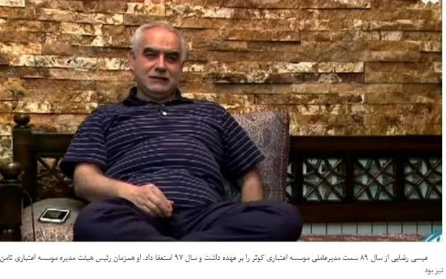 عیسی رضایی از سال ۸۹ سمت مدیرعاملی موسسه اعتباری کوثر را بر عهده داشت و سال ۹۷ استعفا داد. او همزمان رییس هیات مدیره موسسه اعتباری ثامن نیز بود.