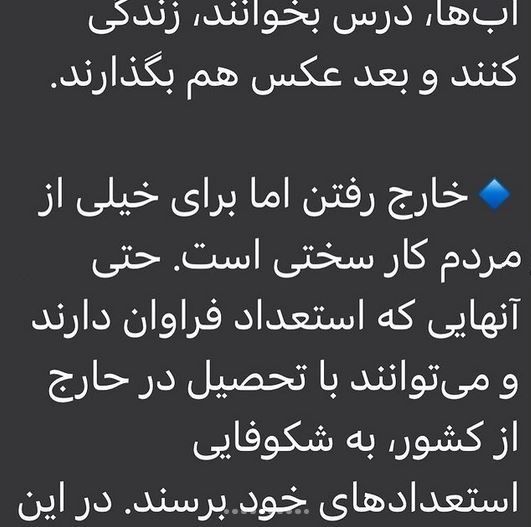 ما سالها هزینه شعار این پدرها را دادهایم و الان کمی برایمان سخت است که عکسهای فرزندان آنها را در خارج با سبک زندگی متفاوت از ایران میبینم