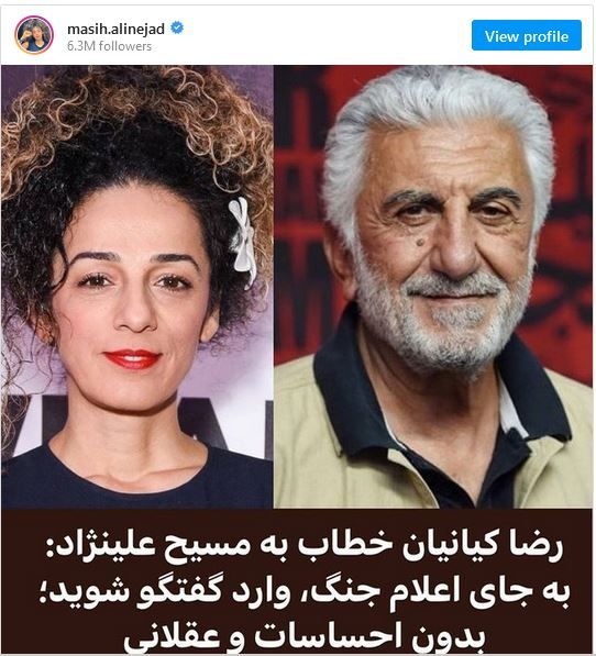آقای کیانیان شاید منطق ما و شما خیلی وقت است معیارهایش از هم متفاوت شده. چشمهای ما و شما خیلی وقت است تصاویری متفاوت را از این سرزمین میبیند. شاید گوش هایتان ضجههای مادران داغدار و مردمانی که زیر بار ستم خرد میشوند را نمیشنود که میگویید احساسات را کنار بگذاریم. و در پایان نوشته بودید اگر عقایدم را دوست ندارید چه ارتباطی به بازیگریم دارد. چقدر فاصله است میان ما. چگونه از یاد بردید آن درسهای بزرگی را که در روز اول ورود به هنر آموختید؟ آنجا که رومن رولان نوشت: اگر هنر و حقیقت نمی توانند با هم زندگی کنند، بگذار هنر بمیرد. بدون حقیقت بدون گفتن از رنجها و دردهای آن سرزمین و مردمانش، هنر هنرمندان چیزی نمیارزد. برای من و این مردم، هنر و حقیقت هرگز از هم جدا نیست. اگر خواستید گفتگو کنید بدانید که ما منطقی برای چشم پوشی از دردهای مردم نداریم واتفاقا سرشار از احساس و شور برای گریستن و خندیدن با مردممان هستیم. دوباره میپرسم چرا به جای رفتن در جشنوارهی «فجر» همصدا با مردم ایران به جنایت خمینی و فساد مالی آقازادههایش اعتراض نمیکنید؟