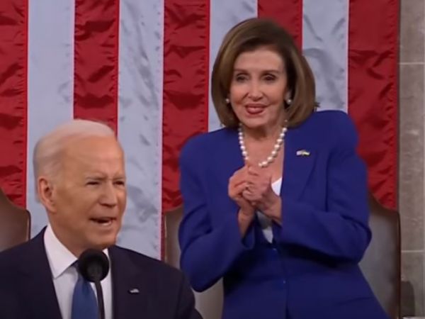 در سخنرانی سالیانه رئیس جمهور در آمریکا، زمانیکه بایدن در مورد سربازان امریکایی که در عراق بودند و با خطرات زیادی مواجهه میشدند، حرف میزد که نانسی پلوسی یک دفعه غیرعادی از جاش بلند شد، ذوق زده این حرکت رو از خودش درآورد.