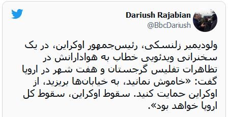 سخنرانی زلنسکی برای هواداران اوکراین در تفلیس: خاموش نمانید