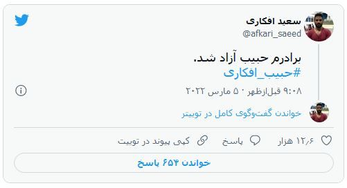 سعید افکاری پیشتر در اواسط آذر امسال در توییتی گفته بود که برادرانش «۱۵ ماه گذشته را در انفرادی و بدون حتی یک تماس گذرانده‌اند».