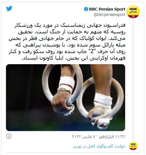 بی بی سی:فدراسیون جهانی ژیمناستیک گفت به دلیل این که ایوان کولیاک در مسابقات قهرمانی جهان قطر با چاپ کردن حرف "Z" روی پیراهنش کنار حریف اوکراینی روی سکو ایستاد، برای او پروندهای انضباطی گشوده است. اما چرا این حرف نماد حمایت از جنگ شده است؟