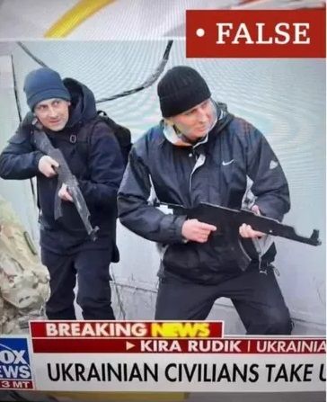 یک اسکرین شات از شبکه خبری فاکس نیوز دو مرد اوکراینی را نشان می‌دهد که دو تفنگ که به نظر چوبی هستند را به دست گرفته‌اند. این تصویر در شبکه‌های مجازی به‌شدت پخش‌شده است.