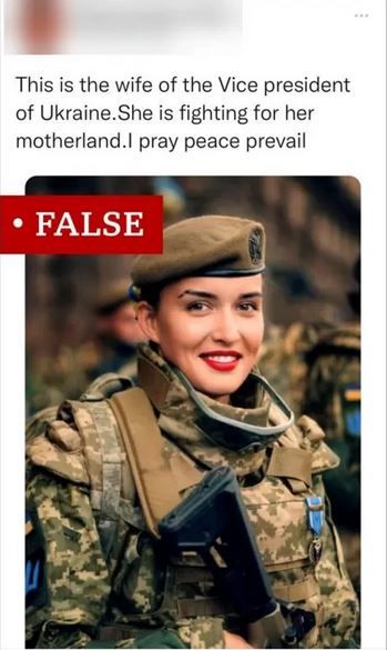 عکسی شبکه‌های مجازی منتشرشده است که ظاهراً در آن همسر معاون رئیس‌جمهور اوکراین را می‌بینیم که به ارتش کشورش پیوسته تا با حمله روسیه مبارزه کند.