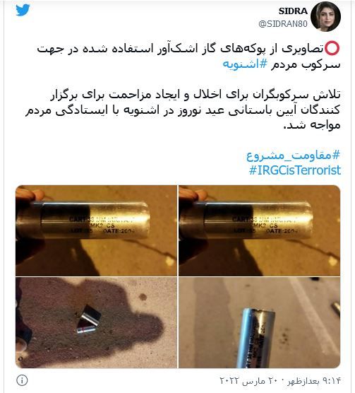 عکسی که از حضور نیروهای امنیتی برای جلوگیری از برگزاری مراسم نوروز در روستای نی در سالهای گذشته منتشر شده بود.رادیو فردا:بر اساس گزارشهای غیر رسمی، نیروهای یگان ویژه شامگاه یکشنبه، ۲۹ اسفند و ساعتی پس از آغاز سال ۱۴۰۱، تجمع مردم شرکتکننده در مراسم نوروز در اشنویه را به خشونت کشاندند.
