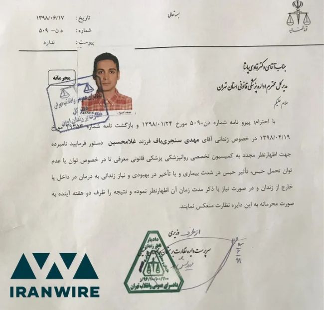 نامه محرمانه زندان به پزشکی قانونی و استعلام از وضعیت بیماری کیانوش سنجریوظیفه اخلاقی:در مدتی که در مرخصی استعلاجی بودم وظیفه اخلاقی و انسانی خود دانستم که در گفتگو با رسانههای آزاد درباره ادعاهای مکرر مقامهای جمهوری اسلامی برای بازگشتِ بیخطرِ ایرانیان به ایران و احتمالِ دچار شدنِ آنها به بلایی که به سر من آمد، هشدار دهم و از این بابت و نیز به خاطر دفاع از حقوق سایر زندانیان سیاسی بود که آزادیام به تعویق افتاد، حضور و غیابم در دایره نظارت بر زندان دو سال به طول انجامید و تهدیدها ادامه یافت.