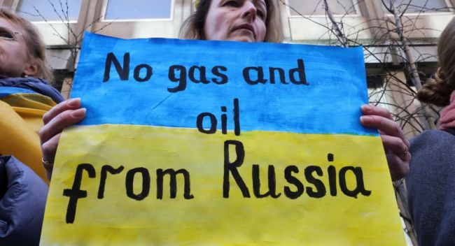 زنی نوشتهای مبنی بر «نه به واردات گاز و نفت از روسیه» را در دست گرفته است. گروه هفت کشور صنعتی پرداخت پول گاز روسیه به روبل را رد کردرادیو فردا:وزیران انرژی گروه هفت کشور صنعتی روز دوشنبه هشتم فروردین درخواست روسیه برای پرداخت گاز وارداتی از این کشور به روبل را رد کردند.