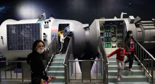 چند بازدیدکننده در نزدیکی مدلی از یک آزمایشگاه فضایی در نمایشگاهی با موضوع توسعه اکتشافات فضایی چین، موزه علم و فناوری چین در پکن.صدای آمریکا:تحلیلگران مسائل نظامی میگویند چین اکنون فناوری، سختافزار، و دانش لازم برای هماهنگکردن جنگ در فضا را دارد. به باور تحلیلگران، ارتش چین میتواند سامانههای تجهیزات نظامی را در فضا مستقر کند و یا از ماهوارهها برای نظارت بر سطح زمین استفاده کند.به گفته یک تحلیگر، پکن در نهایت ممکن است از حسگرها به منظور شناسایی زیردریاییهای رقبایش در دریاها استفاده کند.