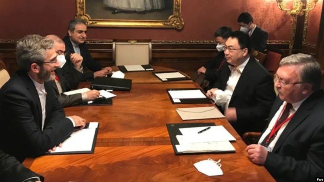 تصویر آرشیوی از دیدار نمایندگان روسیه و چین با هیات ایرانی حاضر در مذاکرات وینرادیو فردا: با وجود اینکه مقام‌های روسیه نقش این کشور در توقف مذاکرات احیای برجام را رد کرده‌اند، جلیلی رحیمی، نماینده مجلس ایران گفته است که «نگرانی‌های روسیه و چین» از علل توقف این مذاکرات است.