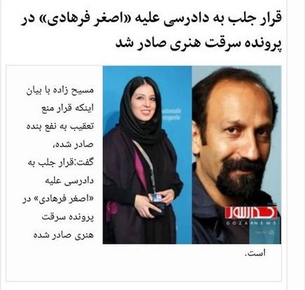 اصغر فرهادیصدای آمریکا: آزاده مسیح‌زاده، از هنرجویان پیشین اصغر فرهادی سینماگر نامدار ایرانی در گفت‌وگویی با شبکه خبری «ای‌بی‌سی» او را به سرقت هنری متهم کرد.