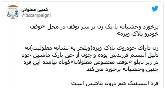 از جمله صفحه ''کمپین معلولان'' که اخبار مربوط به معلولان و افراد اوتیستیک را پوشش میدهد، با انتشار ویدئوی این ماجرا در صفحه توییتر خود نوشت که زن راننده در حالی با حمله و توهینهای این مرد مواجه شده که خودروی این زن دارای نشان ''ویلچر'' به معنای داشتن سرنشین معلول بوده است.