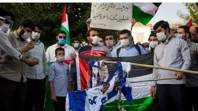همزمان با برقراری روابط بین امارات و اسرائیل، مقام های ایرانی به معترضان به این روابط اجازه داده بودند که مقابل سفارت امارات در تهران پرچم اسرائیل را به آتش بکشند.