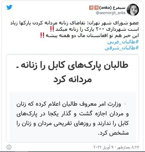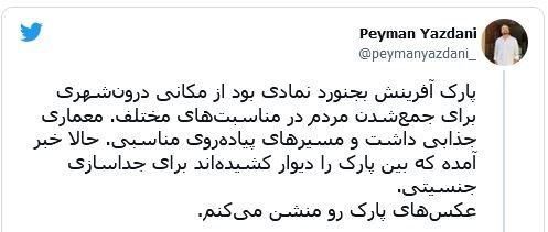 اقدام شهرداری تهران در «مردانه- زنانه» کردن پارکها و دفاع شورای شهر تهران با انتقادات گستردهای از سوی کاربران شبکههای اجتماعی و کارشناسان مواجه شده است.