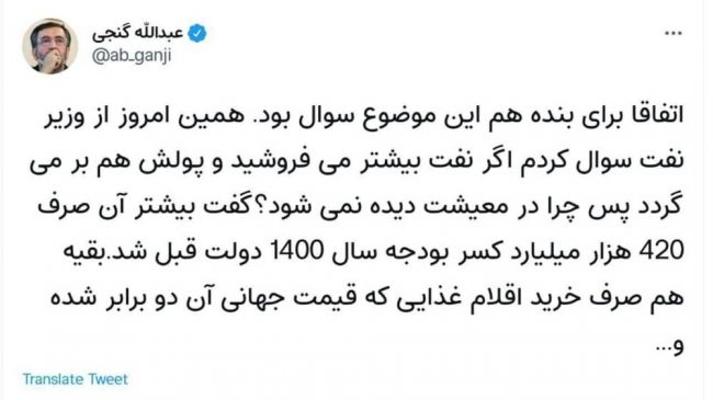 اوجی در پاسخ به سوال فعال رسانه ای اصولگرا علت تاثیرگذار نبودن افزایش درآمد صادرت نفت بر بهبود معیشت مردم را فاش کرد.به گزارش خبرآنلاین، عبدالله گنجی ، فعال رسانه ای اصولگرا نوشت :