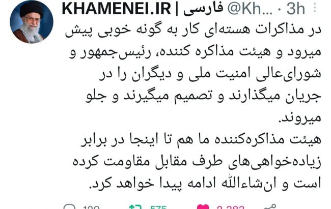 «مذاکرات به خوبی پیش‌ می‌رود» از توییتر علی خامنه‌ای حذف شد