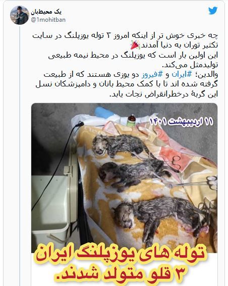 او افزود: «با توجه به شرایط فیزیکی گونه و عدم توانایی در زایمان طبیعی، با نظر دامپزشکان مشاور و دامپزشک معتمد سازمان، نسبت به انجام زایمان سزارین صحرایی اقدام شد...و سه توله یوز ایرانی در این زایمان سزارین صحرایی، سالم متولد شدند.»