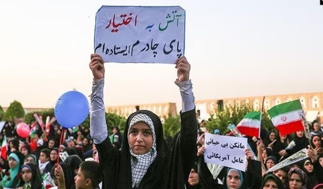 تظاهرات حامیان حجاب اجباری در ایرانرادیو فردا:در حالی که اقدامات علیه زنان و دختران ایران در راستای اعمال حجاب اجباری همچنان ادامه دارد، اظهارات ضدونقیضی درباره آنچه «آتشبهاختیاری» در این زمینه خوانده شده، مطرح شده است.رسانههای ایران روز دوشنبه ۱۴ فروردین نامه بیش از صد و چهل «مادر و خواهر شهید» را منتشر کردهاند که در آن از همه حامیان حجاب اجباری خواسته شده برای اعمال حجاب اجباری علیه زنان و دختران «آتشبهاختیار» عمل کنند.