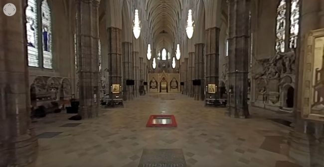اگر با گوشی موبایل این ویدیو را میبینید میتوانید آن را بچرخانید و از نمای ۳۶۰درجه چهار گوشه کلیسای وستمینستر را ببینید.
