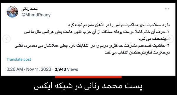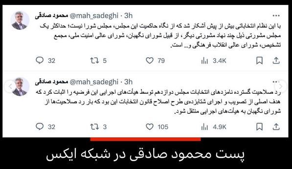 علی شریفی زارچی، استاد دانشگاه در پستی در شبکه ایکس نوشته است: «بساط گزینش و تایید صلاحیت نامزدها، به سخره گرفتن حق حاکمیت مردم است. اگر نامزدی فاسد یا مجرم است مدارکش را در معرض دید عموم بگذارید. تصمیم با مردم است.»