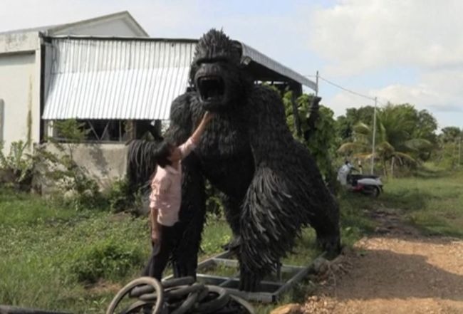 یک هنرمند کامبوجی با استفاده از مواد زائد، به ویژه لاستیکهای کهنه گوریلی غولپیکر ساخت. این هنرمند که از گوریل خود رونمایی کرده امیدوار است بتواند دیگران را به بازیافت مواد در کارشان تشویق کند و همچنین قدمی در مسیر کاهش اثرات سو زبالهها برای محیط زیست بردارد.