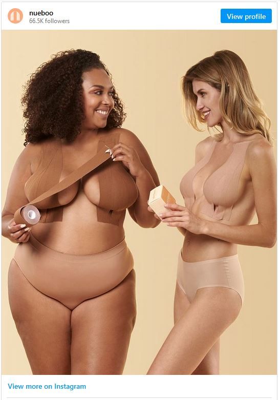 استفانی مونتز، نویسنده سابق مد و زیبایی، برند چسب سینه «نو» (Nue) را در ژانویه ۲۰۲۰ راهاندازی کرد. این فکر نخستین بار بیش از یک سال پیش از آن به ذهن او خطور کرده بود، یعنی زمانی که داشت برای عروسی دخترعمویش لباس میپوشید. لباسی که او میخواست بپوشد یقهای داشت که هیچ سوتینی به آن نمیخورد. بنابراین، او روش نوارچسب مورد تایید کارداشیان را امتحان کرد.