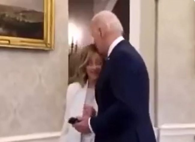 حرکت عجیب و خارج از عرف دیپلماسی رئیس جمهور آمریکا؛ بایدن سر ملونی نخست وزیر ایتالیا را بوسید.