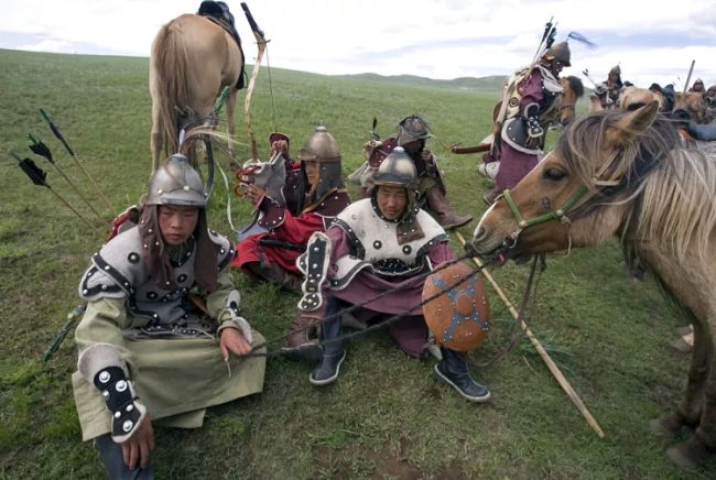 مردان مغولستانی در لباس مبدل سربازان چنگیزخانتاکتیک وفقپذیری و فائق آمدن بر دشمنسربازان مغول مهارت کمانگیری سواره را از همان سنین پایین میآموختند. به آنها آموزش داده میشد که برای داشتن دقت حداکثری، میبایست هنگامی که سم اسب از زمین جدا می شود تیر را از کمان رها کنند.