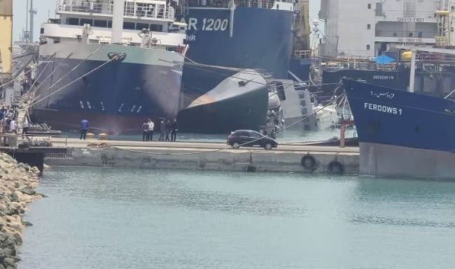 تصویر منتشرشده در رسانههای ایران از واژگون شدن ناوچه سهندرادیو فردا: ناوچه جنگی «سهند» ارتش ایران در نزدیک بندرعباس دچار حادثه شده و تصاویر منتشر شده در برخی رسانههای داخلی نشان میدهد که واژگون شده و بخشی از آن به زیر آب رفته است.روابط عمومی منطقه یکم دریایی بندرعباس روز یکشنبه ۱۷ تیر اعلام کرد ناو سهند در حال تعمیر در اسکله به خاطر نفوذ آب به مخازن، تعادلش را از دست داده اما به خاطر عمق کم دریا، بازگشت ناو به حالت تعادل «به سرعت» درحال انجام است.