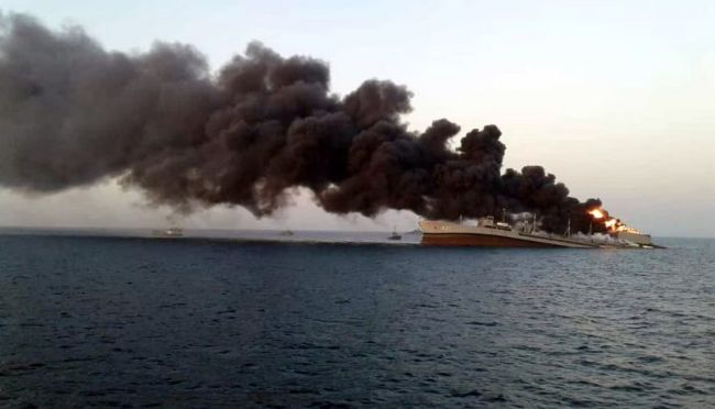 ناو خارک در حال غرق شدن؛ تصویر منتشر شده در خبرگزاری حکومتی ایرناگروهی از منتقدان میپرسند چرا ارتش «واقعیت پشت پرده ناو سهند» را اعلام نمیکند و میگویند «ناو دماوند را روسها» در دریای خزر «زدند» و «ناو پشتیبانی کنارک را سپاه تروریستی پاسداران که باعث کشته شدن ۱۹ تن از بهترین مهندسان نیروی دریایی ارتش شد.»
