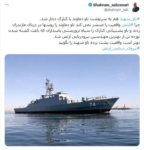 برخی ناظران با اشاره به آسیبهای پیشین به ناوهای ایران از جمله «دماوند، کنارک، خارک، و طلاییه»، این خسارات را ناشی از «فرماندهی ولایتمداران» میدانند و میگویند «ظرف چند سال به اندازه یک جنگ ناو از دست دادهایم.»