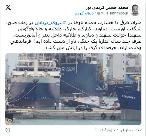کاربران: ارتش «واقعیت پشت پرده» را اعلام کند،«ظرف چند سال به اندازه یک جنگ ناو از دست دادهایم.»