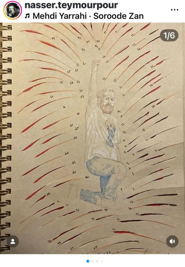 واکنش امین منتظری، گرافیست و حامد اسماعیلیونامین منتظری، گرافیست در شبکه ایکس با انتشار اثری گرافیکی نوشت: «برای هنرمندی که خاموشی کارش نبود و هر ضربه شلاق بر بدنش، نُتی برای نغمه شرافت شد.»حامد اسماعیلیون، از چهرههای انجمن خانوادههای جانباختگان هواپیمای اوکراینی هم در پیامش مهدی یراحی را ستود و نوشت: «در ستایش آنان که «نه» میگویند و پیروزمندان این جنگ نابرابرند.»