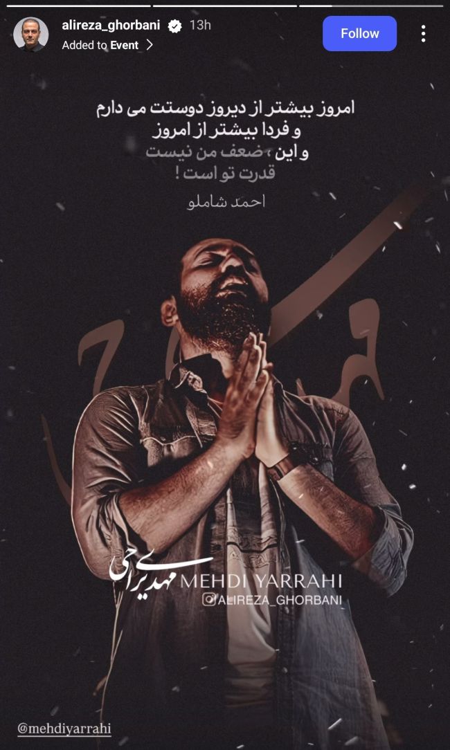 آقای یراحی پیشتر نیز چندین ترانه اعتراضی در حمایت از جنبش «زن، زندگی، آزادی» اجرا کرده بود.