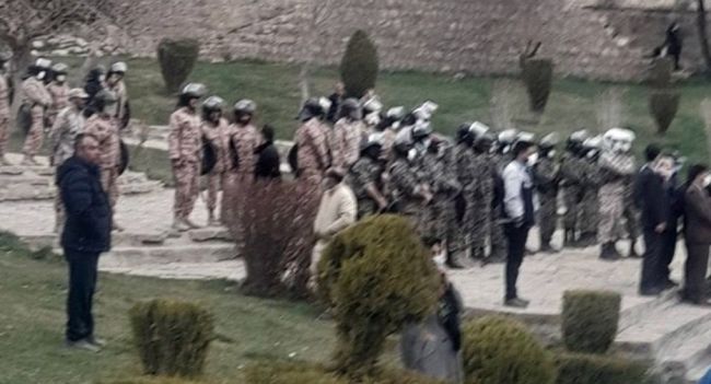 حضور نیروهای امنیتی در پارک کودک سنندج برای ممانعت از برگزاری مراسم نوروز. آرشیو صدای آمریکا: رسانهها از تلاش وزارت اطلاعات جمهوری اسلامی ایران برای جلوگیری از حضور مردم مریوان با پوشش «جامانه» و «لباس خاکی» در مراسمهای نوروزی خبر دادند.