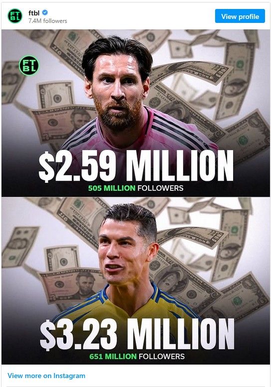 اختلاف میلیونی رونالدو و مسی؛ چه کسی بیشترین درآمد را از اینستاگرام دارد؟