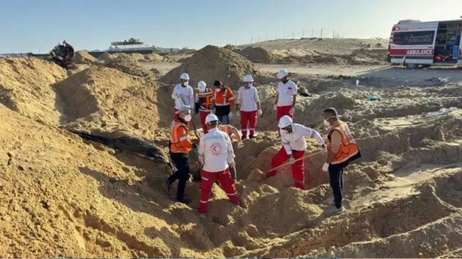 جاناتان ویتال، رئیس دفتر هماهنگی امور بشردوستانه سازمان ملل متحد در غزه، در پستی در شبکه اجتماعی ایکس نوشت که کارکنان این دفتر به بازیابی اجساد از «یک گور دستهجمعی» کمک کردند که «چراغ آژیر یکی از آمبولانسهای له شده مکان آن را مشخص کرد.»